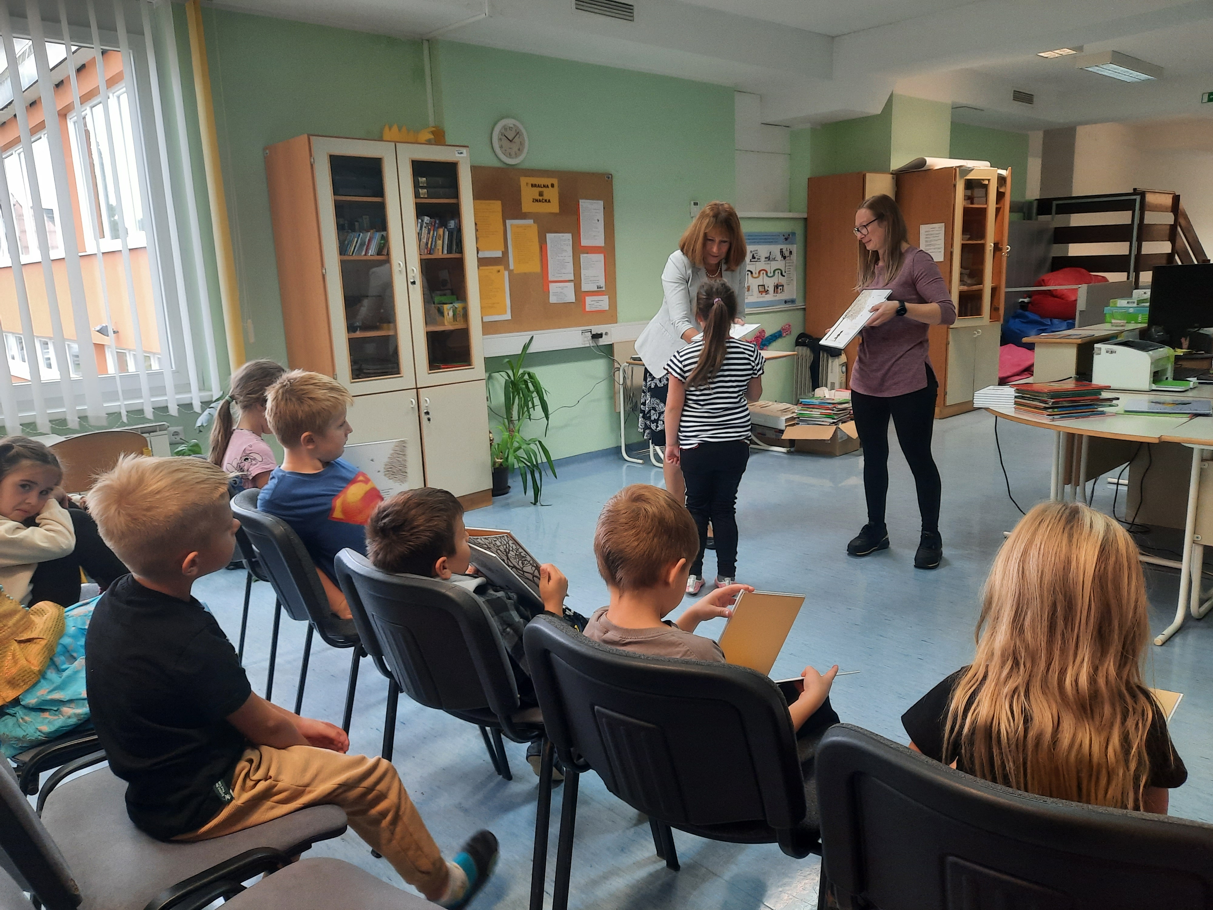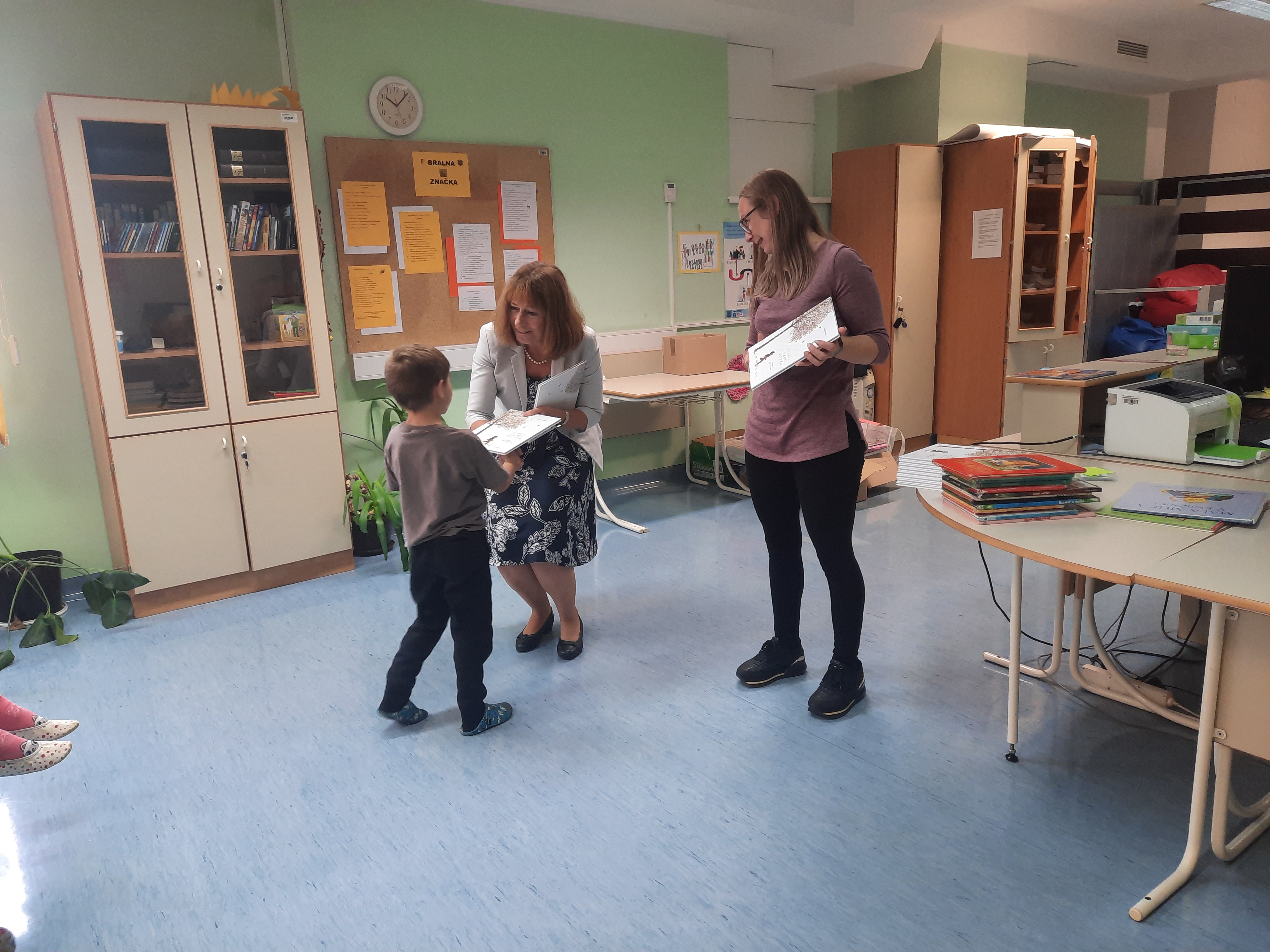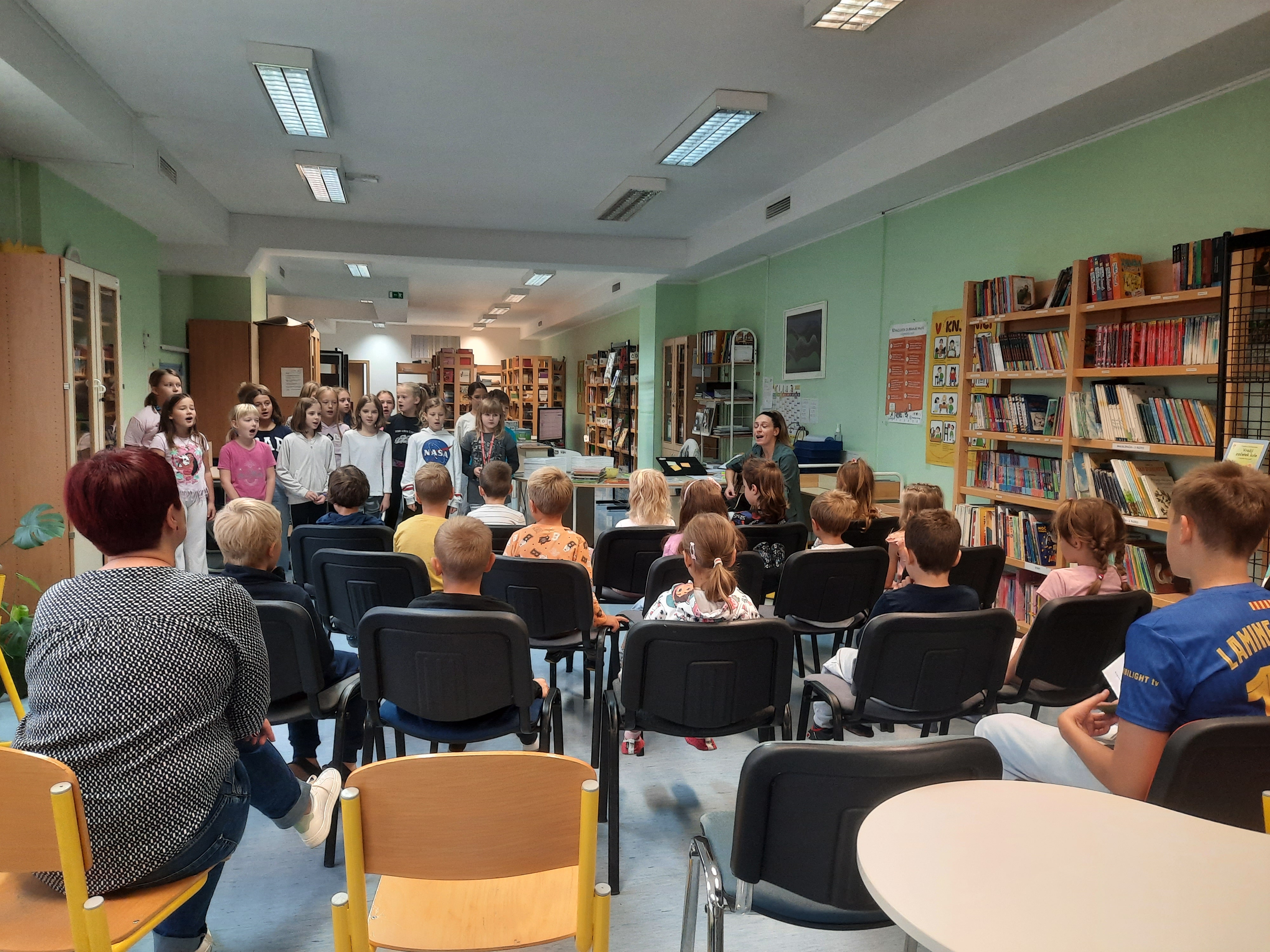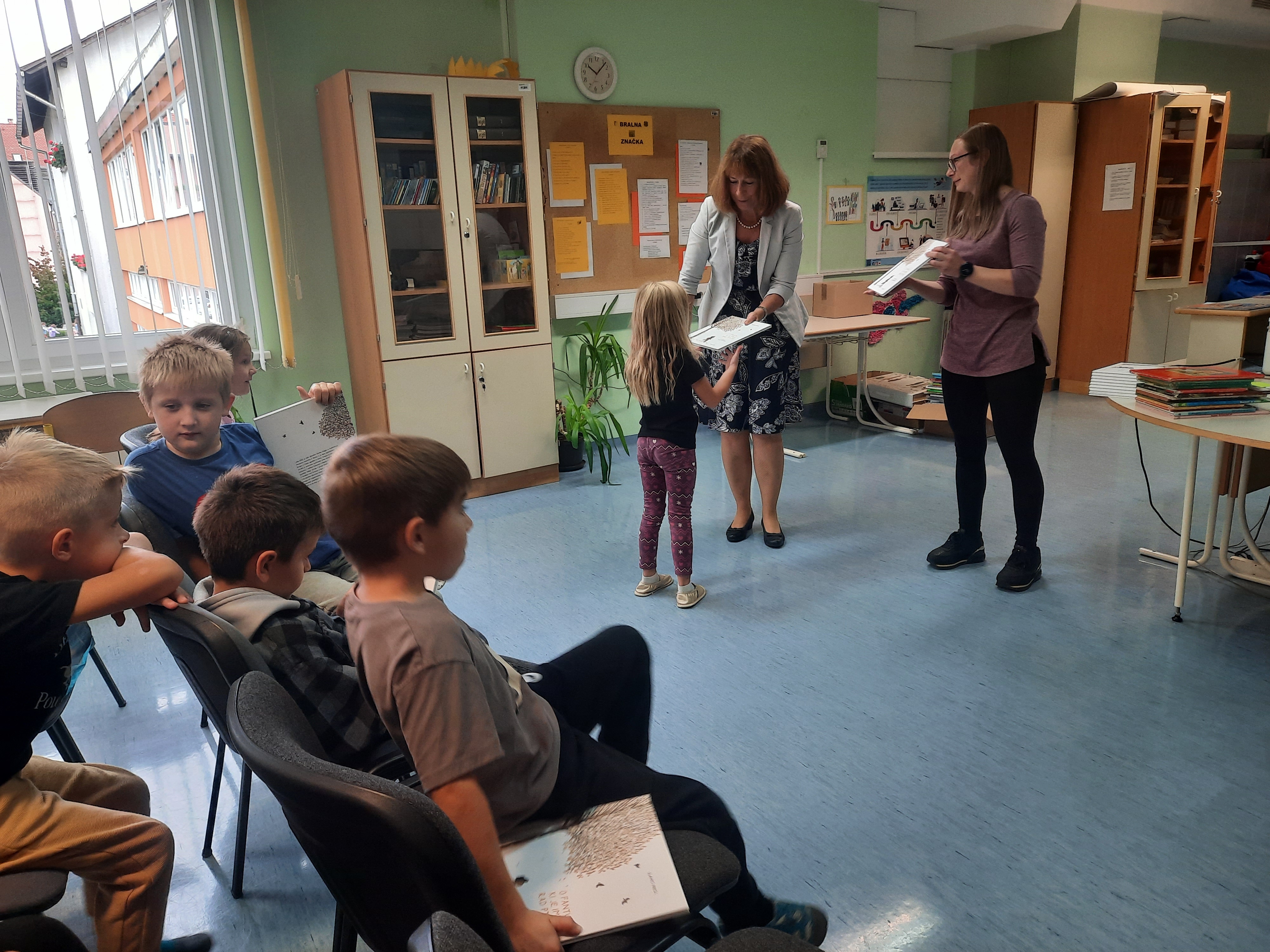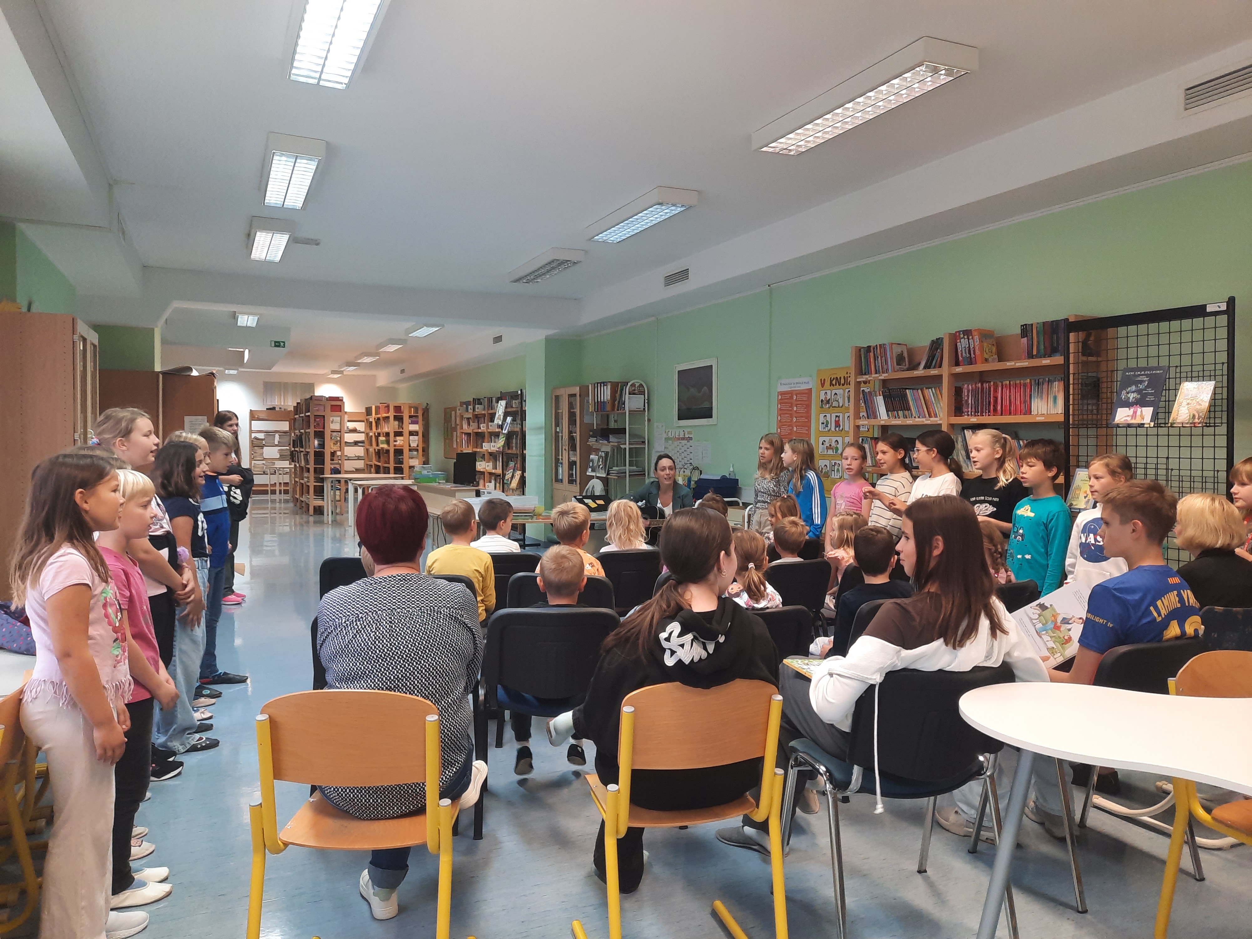 V ponedeljek, 26. 9., je potekal sprejem prvošolcev v šolsko knjižnico. Otroški pevski zbor pod vodstvom Metke Stemlak je popestril sprejem s prepevanjem dveh pesmi. Devetošolci Drejc Pavlič, Hana Juvan in Anika Ravnjak so prvošolcem pripovedovali pravljice Preberi mi zgodbo, Mala Muca v knjižnici in Zajčkov bralni krožek. Učenci so bili seznanjeni z bralno značko. Pridružila se je tudi ravnateljica, ki je prvošolcem podelila darilno slikanico Društva Bralna značka O dečku, ki je imel rad ptičke pisatelja Slavka Pregla.
