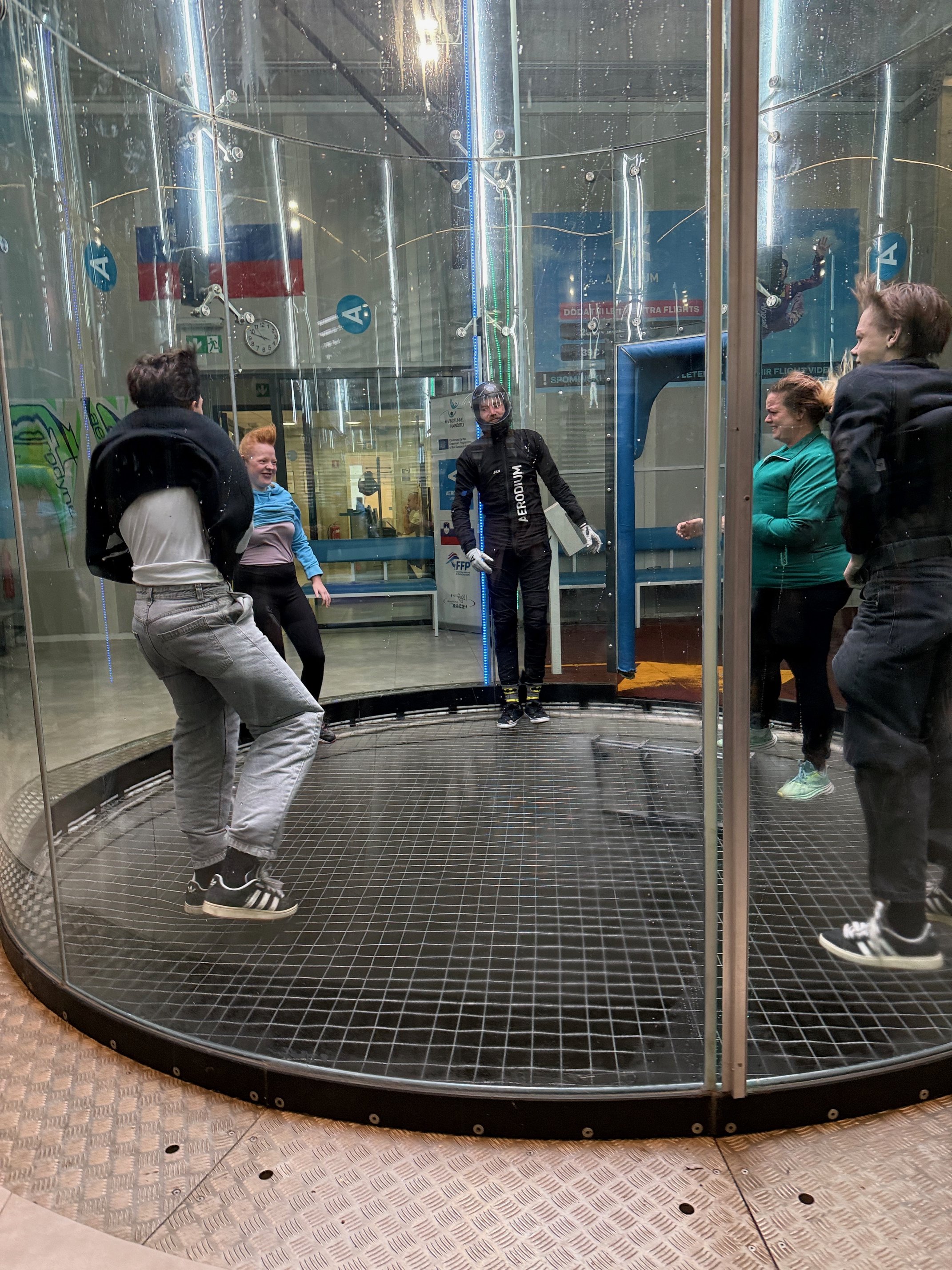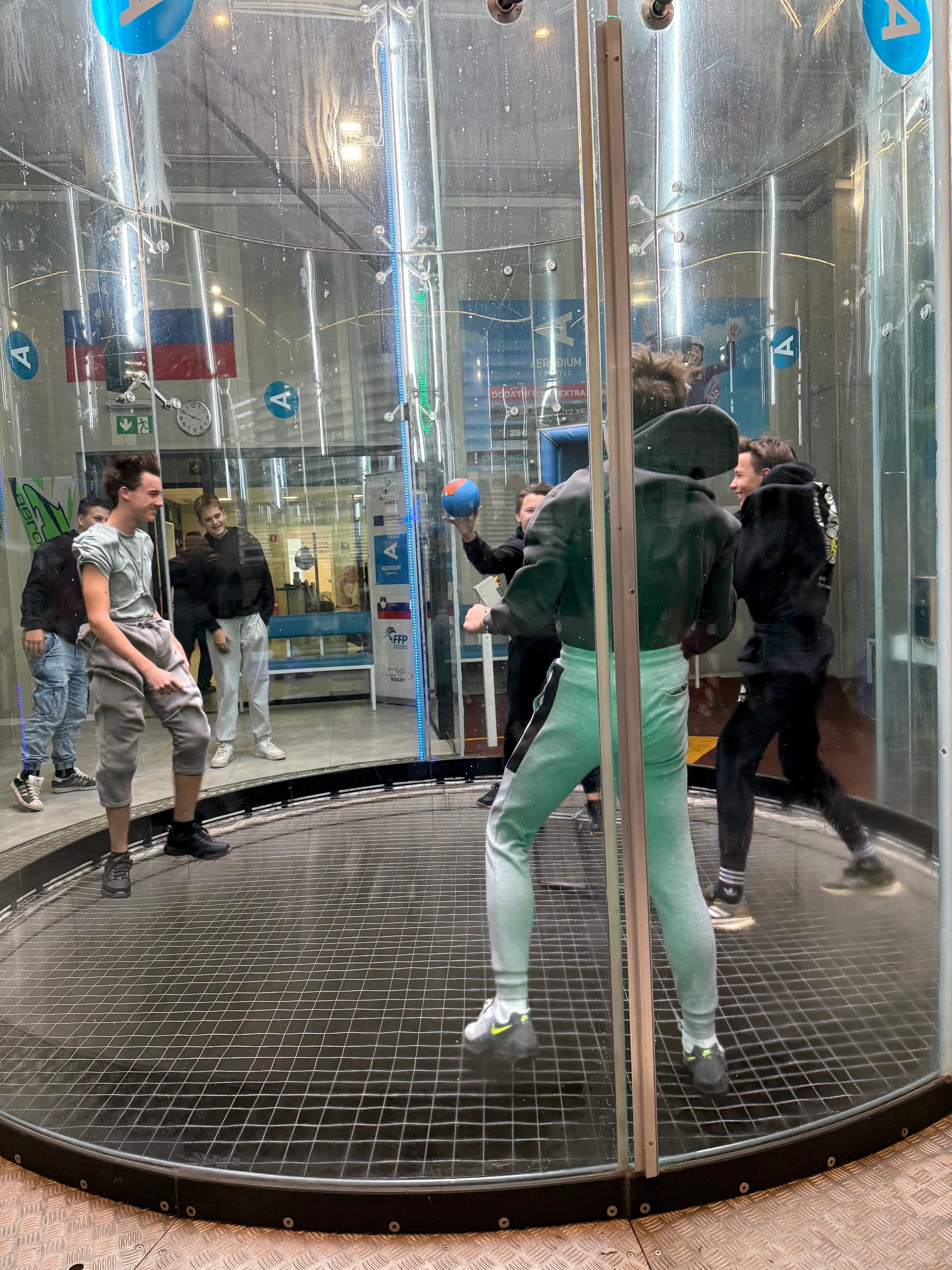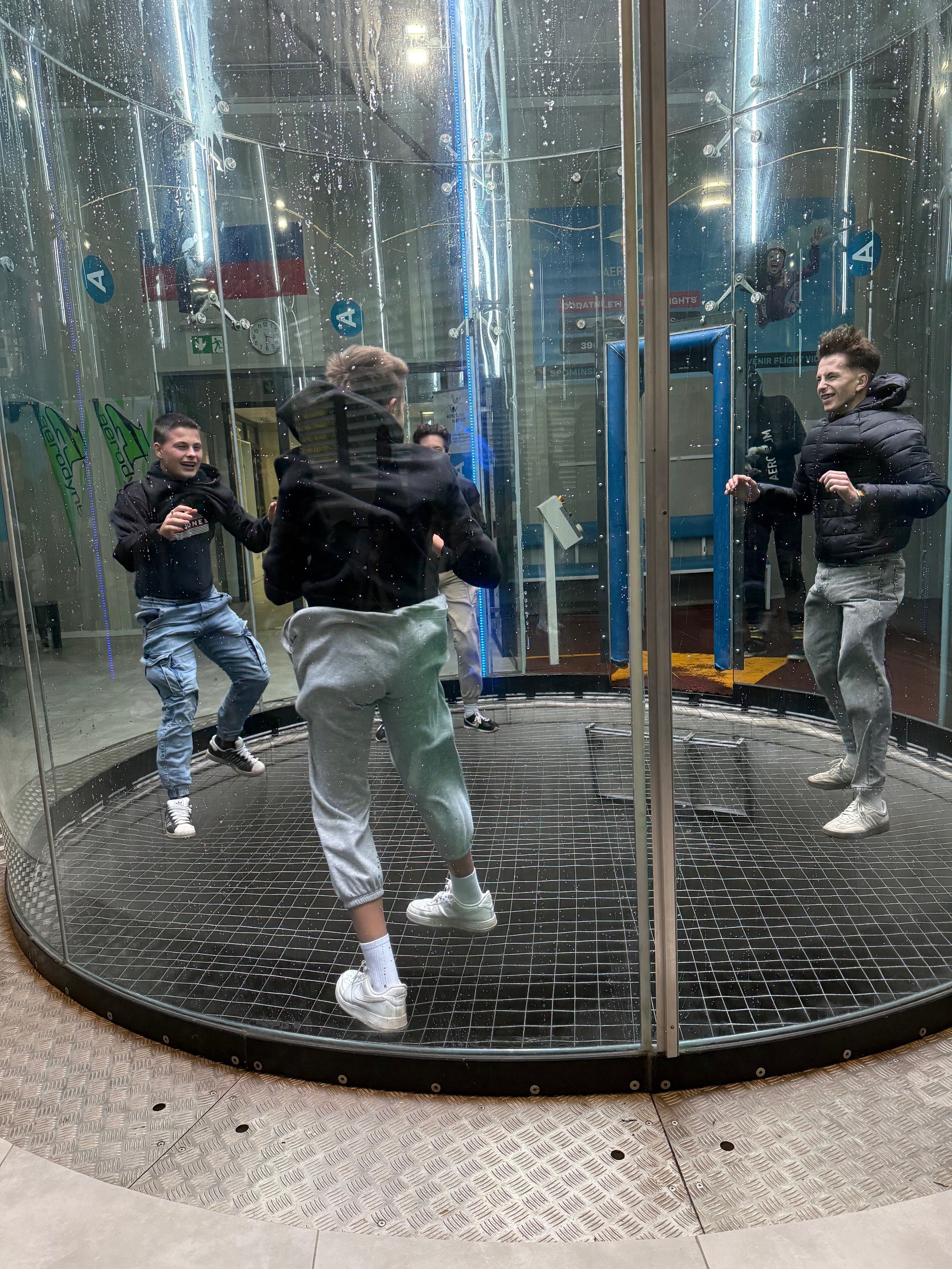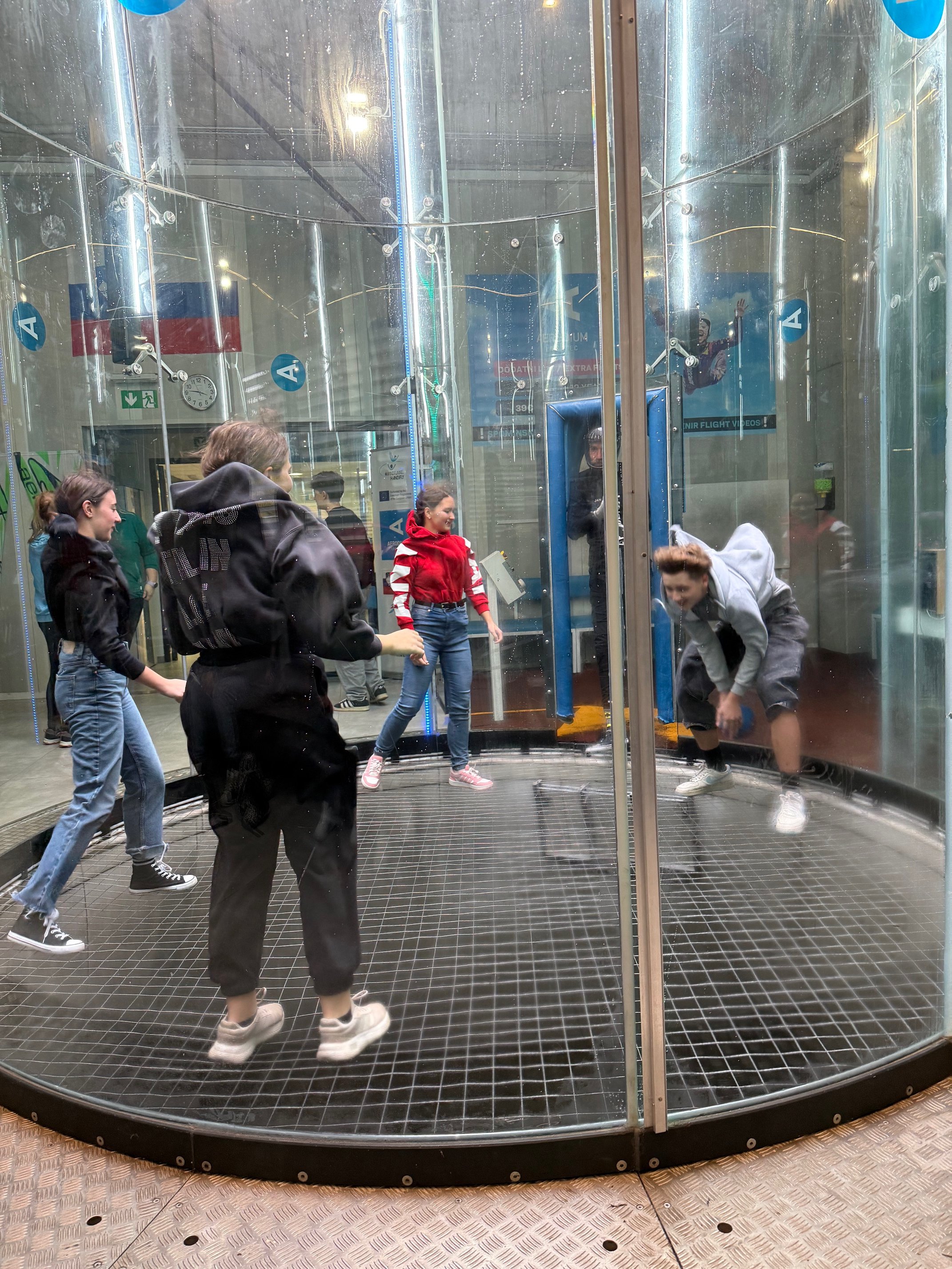 V četrtek, 23. 10. 2025, smo se učenci 9. razreda odpravili na šolsko ekskurzijo v Ljubljano. Z avtobusne postaje Muta smo odšli ob 7. uri zjutraj. Pot je bila kar dolga. Na avtobusu smo se zabavali, klepetali in poslušali glasbo … Ko smo prispeli v Ljubljano, smo si najprej ogledali nekaj znamenitosti mesta. Nato smo obiskali Šolski muzej, kjer smo spoznali, kako so včasih potekale šolske ure in kakšne kazni so imeli učenci, če niso bili pridni. Po ogledu muzeja smo se odpravili še v vetrovnik. Tam nam je gospod, ki tam dela, razložil, kako deluje zračni tok in padalo. Profesionalec nam je pokazal, kako se leti v vetrovniku, in bilo je res zanimivo. Poskusili smo tudi metati žogo v zrak, da smo videli, kako jo zrak odnese. Najbolj zabavno pa je bilo, ko je naša učiteljica šla leteti , vsi smo navijali in se smejali. Na koncu dneva smo se ustavili še v McDonald’su.