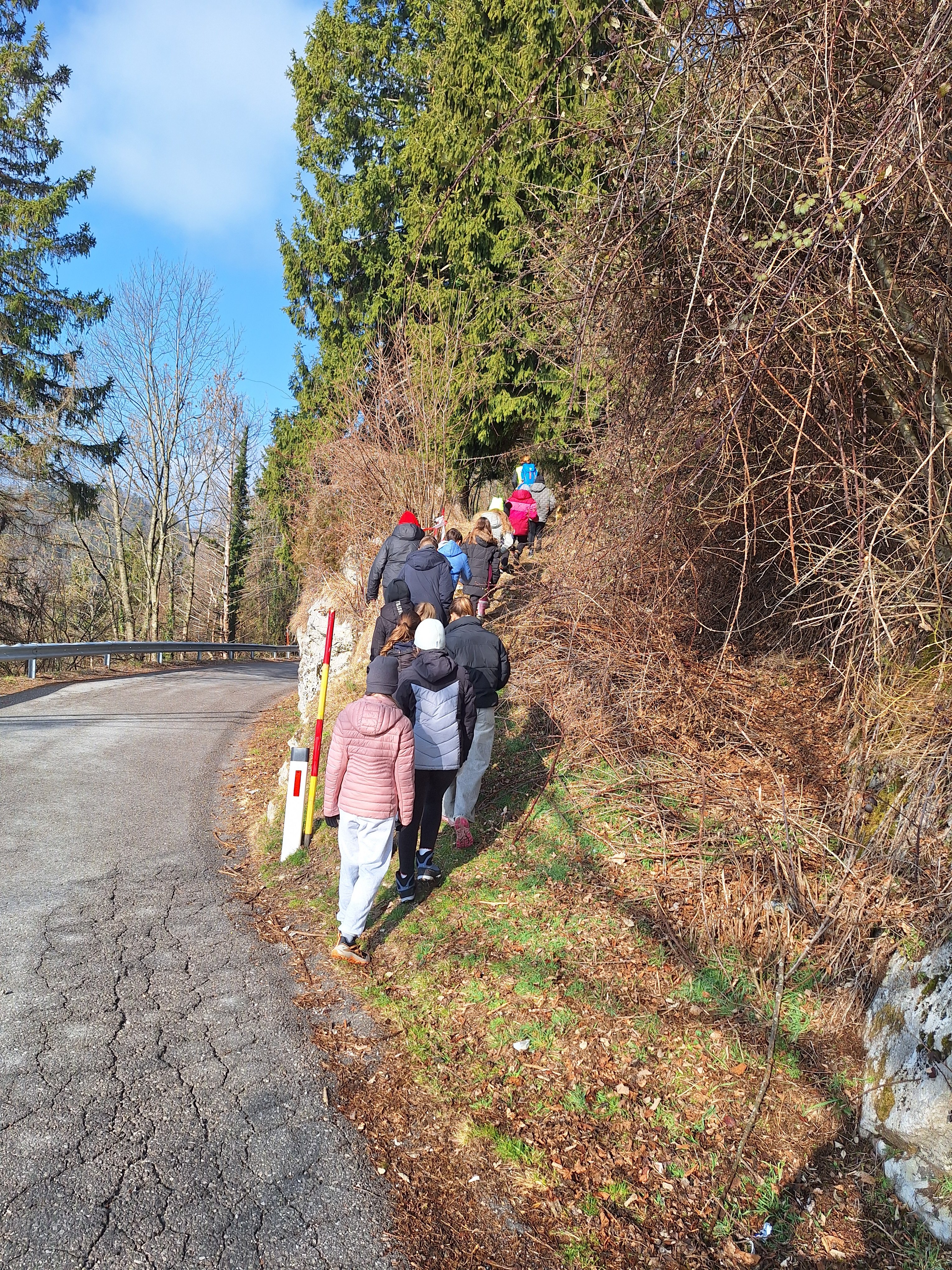 V torek, 3. 3. 2026 smo zjutraj vstali, pojedli zelo dober zajtrk in se pripravili na zbor v jedilnici. Gospod Matjaž je povedal, kaj vse moramo pripraviti za pohod. Dobili smo malico, se primerno obuli in oblekli ter se odpravili na pohod po krožni poti po Muzeju na prostem Kolovratu. Hodili smo po poti miru in na poti videli spomenike, ostanke iz 1. svetovne vojne ter uživali v čudovitem razgledu na Alpe in Beneško Slovenijo. Po dolgi poti smo prišli do prostora, kjer smo pomalicali. Po malici smo si ogledali strelne jarke iz 1. svetovne vojne, na vrhu hriba pa se kot pravi planinci vpisali v planinsko knjigo in dobili štampiljko. Po prihodu v CŠOD Kavka nas je čakalo dobro kosilo, napisali smo pismo staršem in se spet razdelili na 2 skupini, da smo nadaljevali delo od včeraj. B razred je šel v gozd in preučeval živali, A razred pa je po vasici iskal ostanke preteklosti. Dan smo zaključili z večerno animacijo – filmom Minecraft in skupinskim branjem. Za nami je bil dan poln doživetij na prostem in dan podarjenih trenutkov.