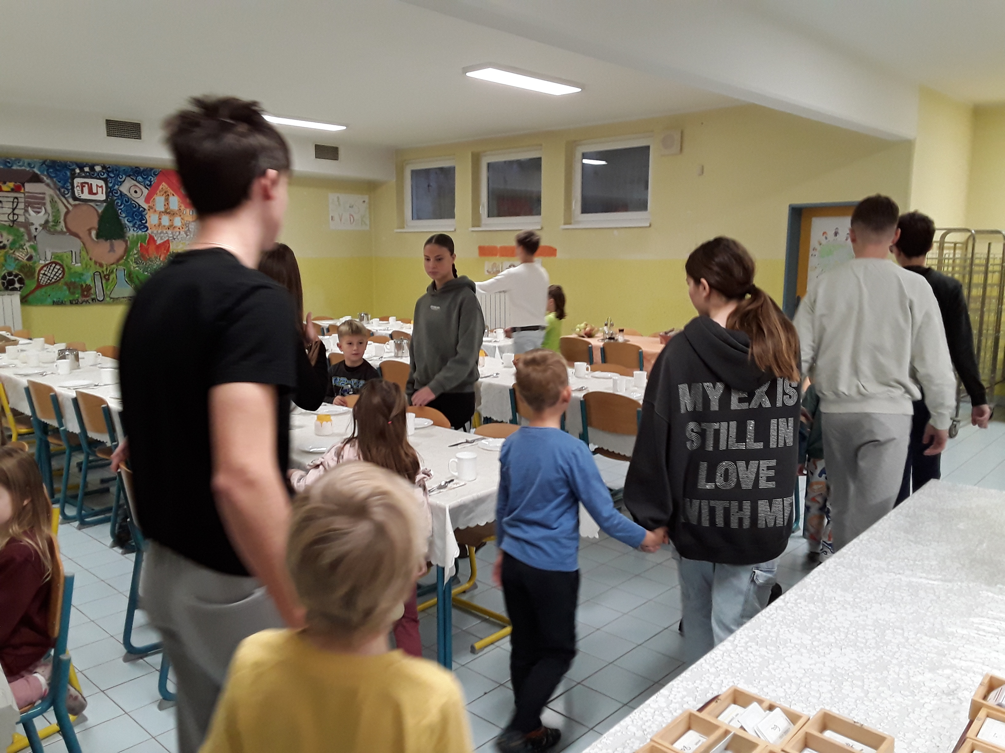 Za zaključek smo se pridružili celotni šoli in skupaj zapeli sklepno pesem, s katero smo lepo zaokrožili dan tradicionalnega zajtrka.