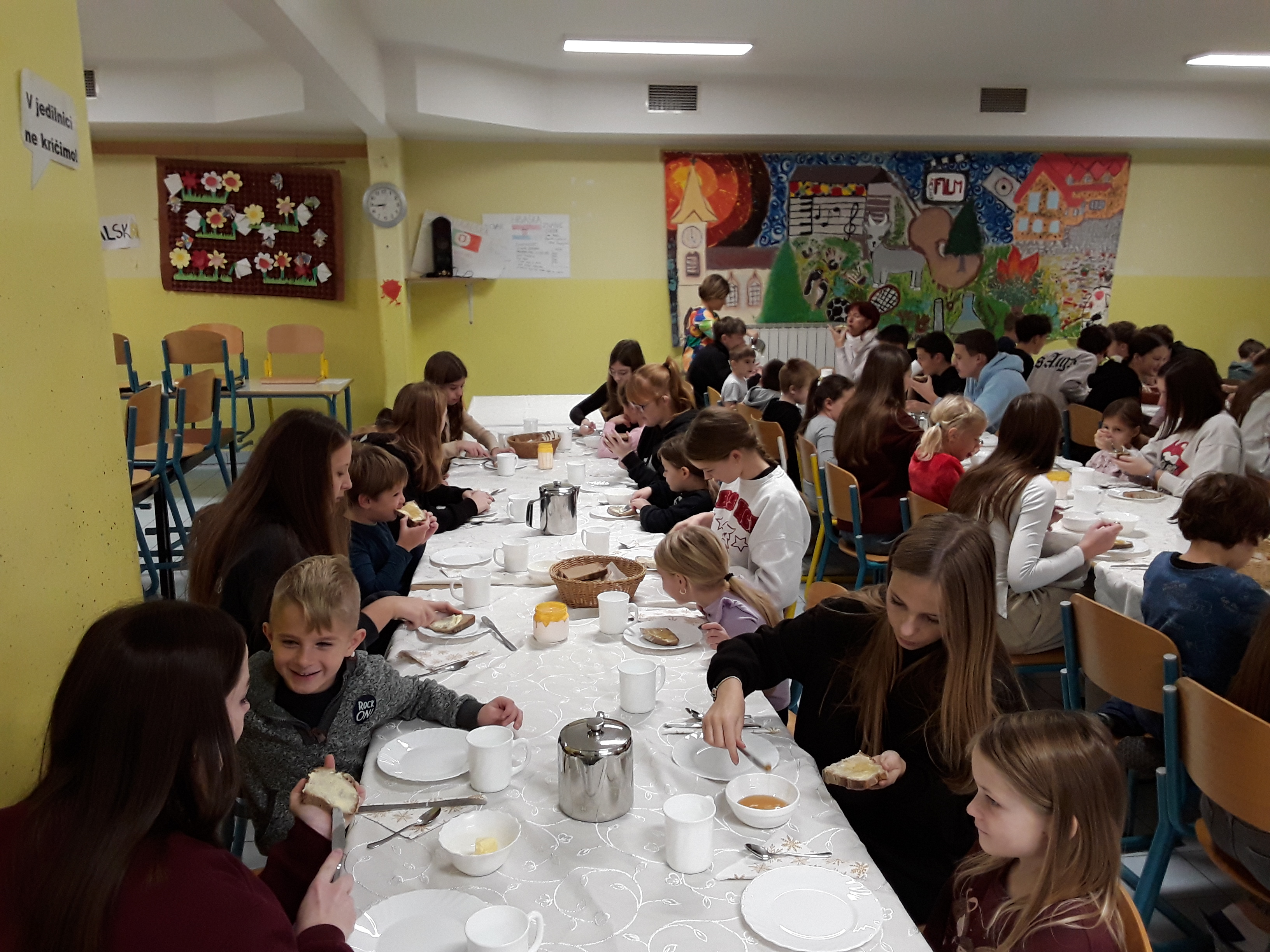 Devetošolci, ki na šoli delujejo kot tutorji mlajšim učencem, so najprej skupaj s prvošolci pripravili mizo za zajtrk. Nato so prvošolce nagovorili ter jim razložili, zakaj je Tradicionalni slovenski zajtrk pomemben in kakšno sporočilo nosi – spodbujanje zdrave prehrane, pomen lokalno pridelane hrane ter spoštovanje do dela slovenskih kmetov in čebelarjev.