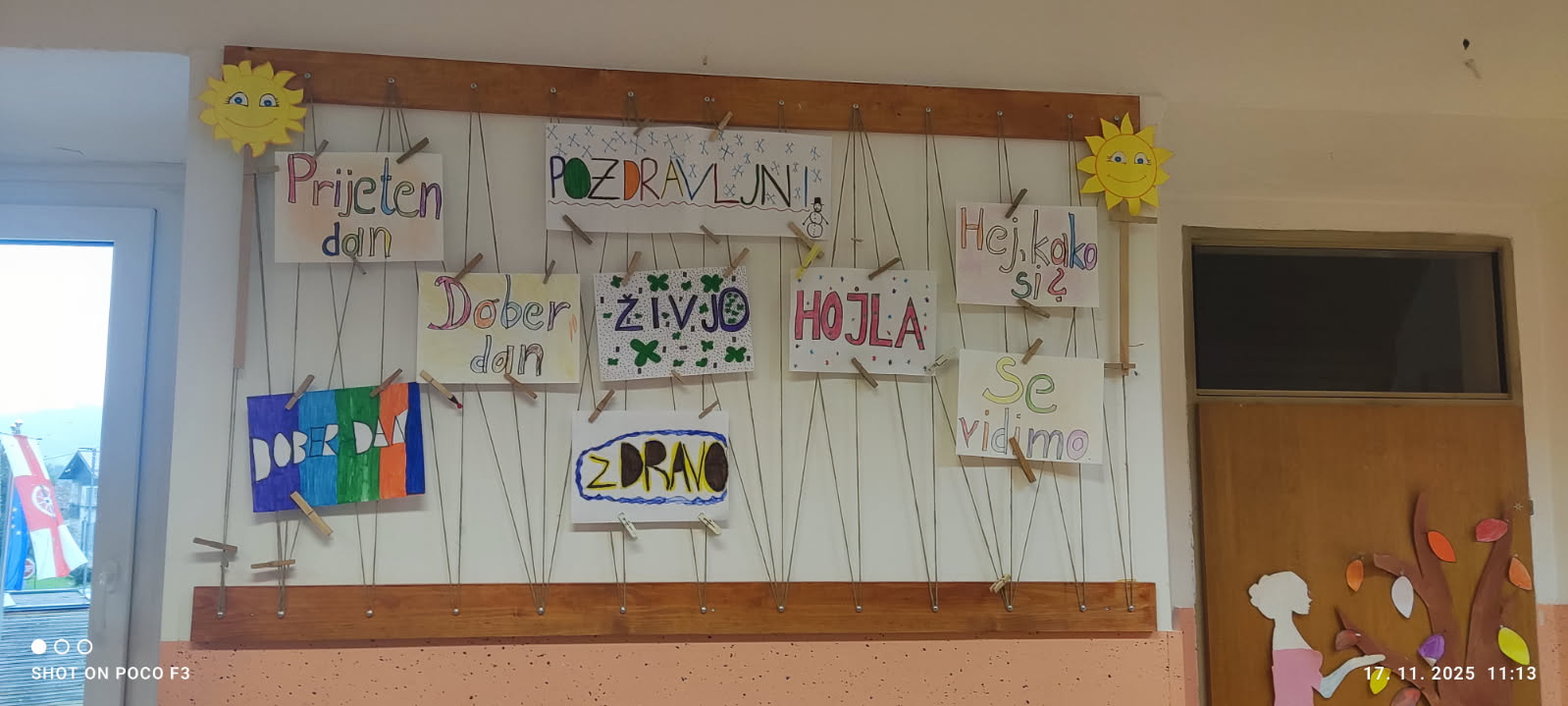 Vsak razred je pripravil nekaj pozdravov ali prijaznih misli, ki so jih učenci zapisali na barvite listke ter jih razobesili po celi šoli.